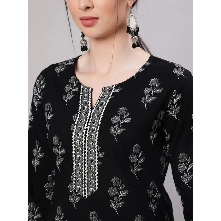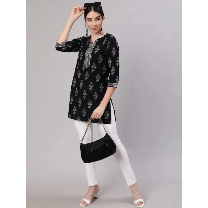 The Varaya Black Cotton Kurta blends timeless tradition with modern elegance. Crafted from pure cotton with a delicate floral print, this straight-cut tunic offers breathable comfort and effortless style.